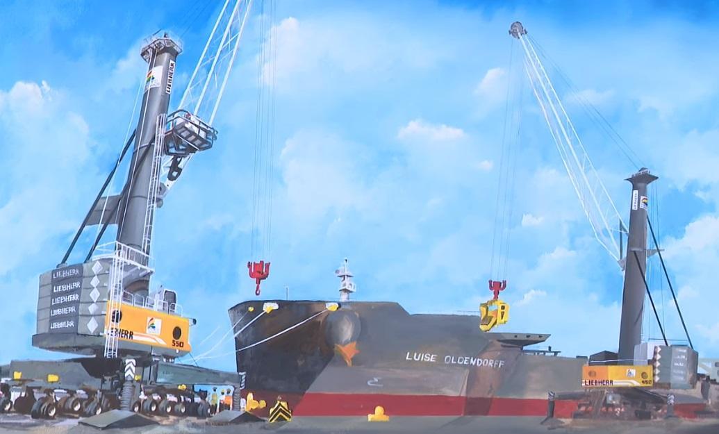 The new mobile cranes, which cost 25 million dollars, can each handle 144 tonnes. They increase the port’s capacity from four to six mobile cranes, which will greatly boost the capacity to handle general and bulk cargo.