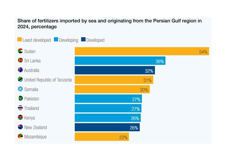 The Strait of Hormuz is crucial for the global supply of fertilisers, both as a trade route and because it lies within a region of producing countries, UNCTAD emphasises.