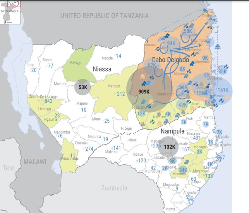 In total, there are an estimated 734,000 internally displaced people in northern Mozambique (figures consolidated up to five weeks ago), a decrease of about 9,000 from the data collected in September.