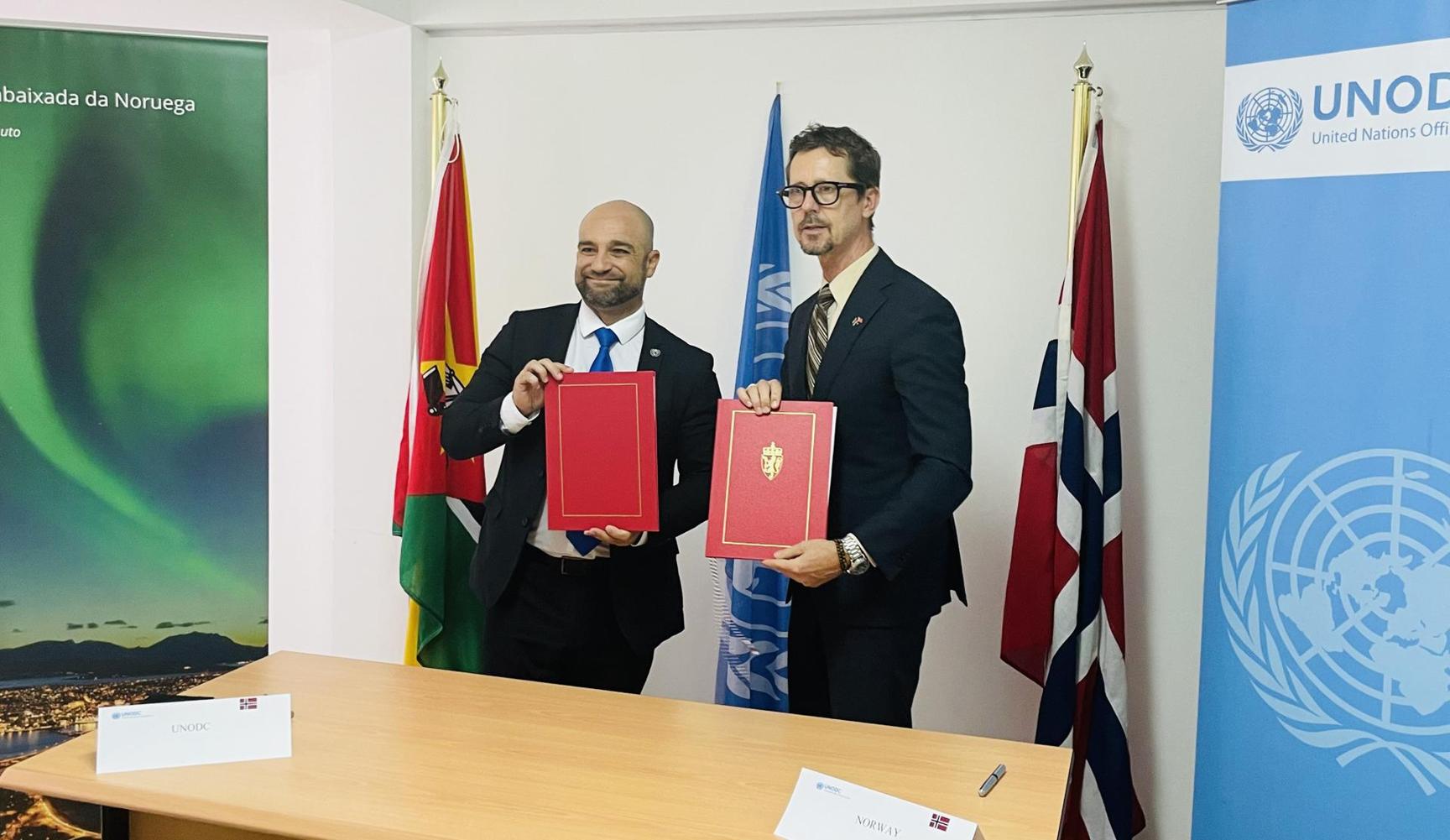 The signing ceremony featured participation of the UNODC Head of Office in Mozambique and Malawi, Marco Teixeira and the Norwegian Ambassador to Mozambique, Haakon Gram-Johannessen.