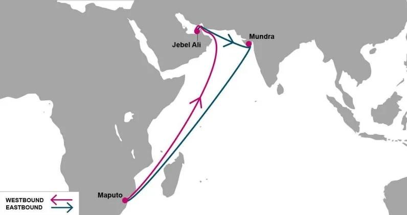 Jebel Ali – Mundra – Maputo – Jebel Ali (Bi-weekly frequency)