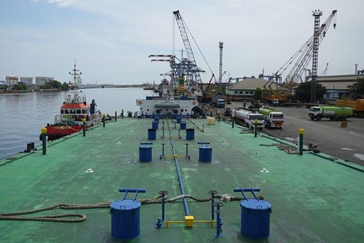 Palm oil loaded into trucks from a tanker docked at Tanjung Priok Port in Jakarta, Indonesia, on Tuesday, April. 26, 2022.