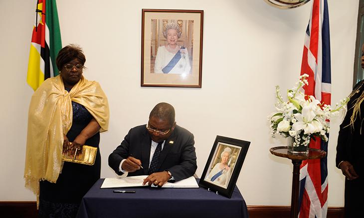 Africa-Press – Mozambique. Visiting the UK High Commission in Maputo on Friday to sign the book of condolences, President Nyusi said that cooperation between Mozambique and the United Kingdom would remain strong despite the death of Queen Elizabeth II.