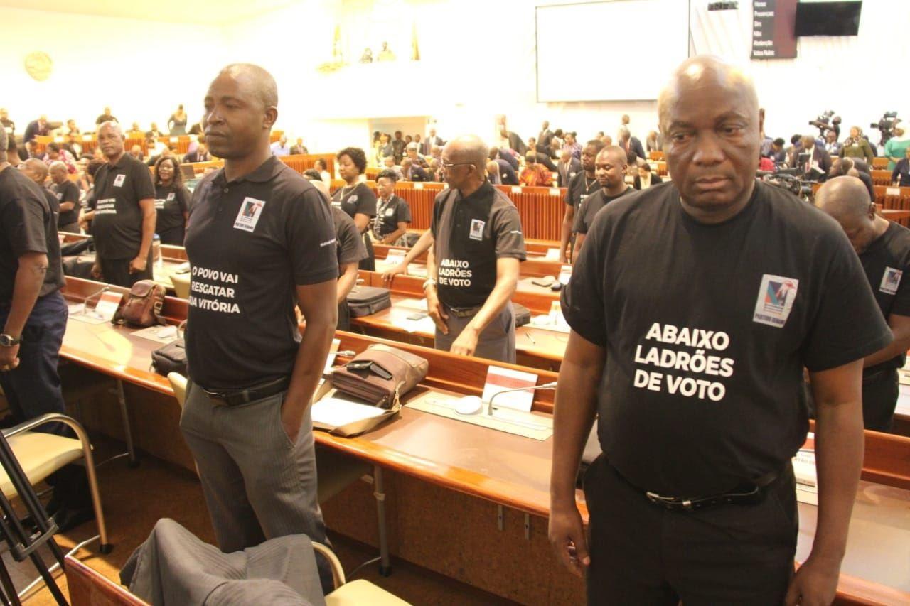The Renamo deputies all wore black T-shirts carrying such slogans as “down with the thieves of votes”, and “The people will recover their victory”.