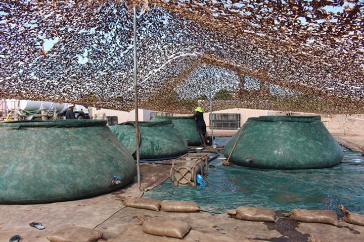 On a daily basis Combat Team Alpha requires 30 000 litres for basic living purposes, and this includes water for cooking, washing, building and maintenance of the base. The process starts early in the morning with a team of three fetching water from a river/stream a few kilometres from the base. At the base, another team of three members is ready to start the process of converting the unclean water to clean useable water.