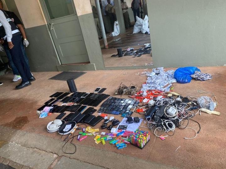 Among the items seized were SIM cards from national networks and neighbouring South Africa, electronic cigarettes, headphones, mobile phone chargers and power banks, among other items prohibited within the facility.