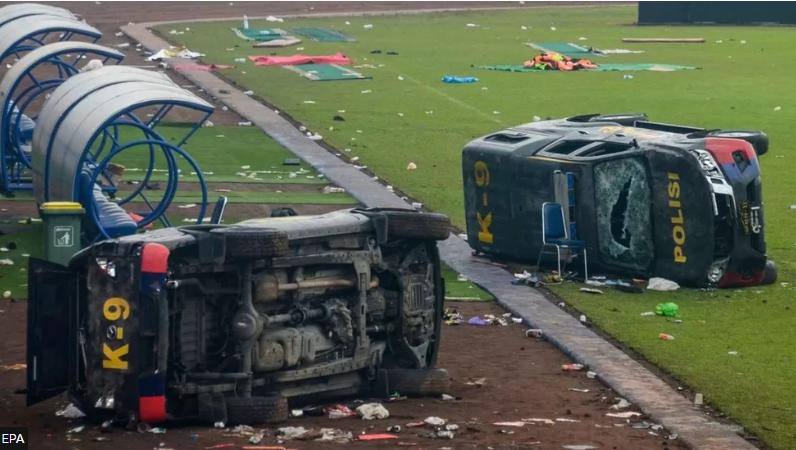 The disaster happened last week when police fired tear gas at fans who invaded the pitch after a defeat. Hundreds tired to flee through the exits, which caused a deadly stampede.