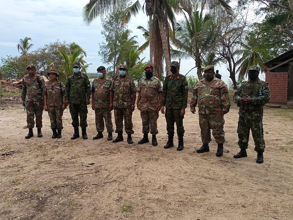 Africa-Press – Mozambique. On Wednesday, 19th January 2022 a delegation headed by Gen Rudzani Maphwanya the Chief of South African National Defence Forces (CDF) accompanied by Lt Gen Bertolino Jeremias Capetine the Mozambican Deputy Chief of General Staff (D/CGS), Maj Gen Xolani Mankayi the SADC Mission in Mozambique (SAMIM) Force Commander and other senior officers from SANDF, SAMIM and the Mozambique Armed Defense Forces (FADM) visited Rwanda Security Forces (RSF) headquarters at Mocimboa da Praia in Cabo Delgado Province in Mozambique