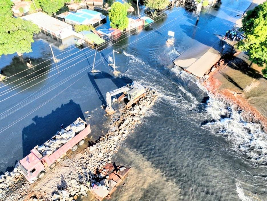 A strong water current continues to hinder emergency repairs on National Road One (N1), near the Nguluzane River bridge in Xai-Xai, Gaza province.