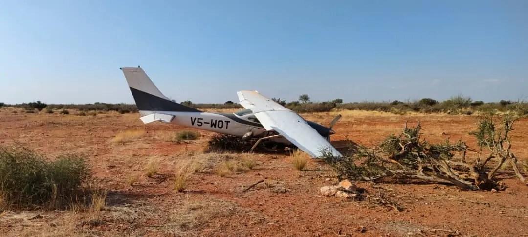 No injuries were reported, but the light Cessna 182, with the registration number V5-WAT, is seriously damaged.