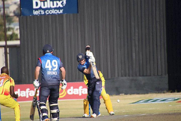 He was helped by Jan Frylinck, who notched 93 runs off 48 balls, scoring four fours and eight sixes.