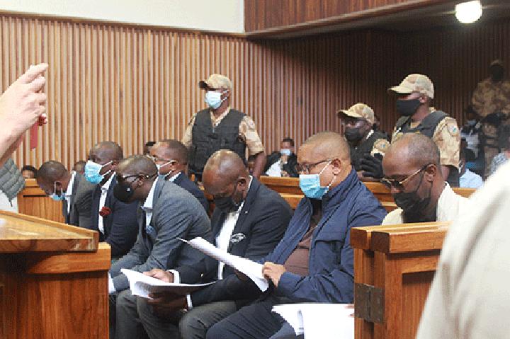 The State alleges that all the accused acted in common purpose. The matter was postponed to 11 March for the submission of arguments. Seeking bail… Some of the Fishrot accused during an earlier court appearance.