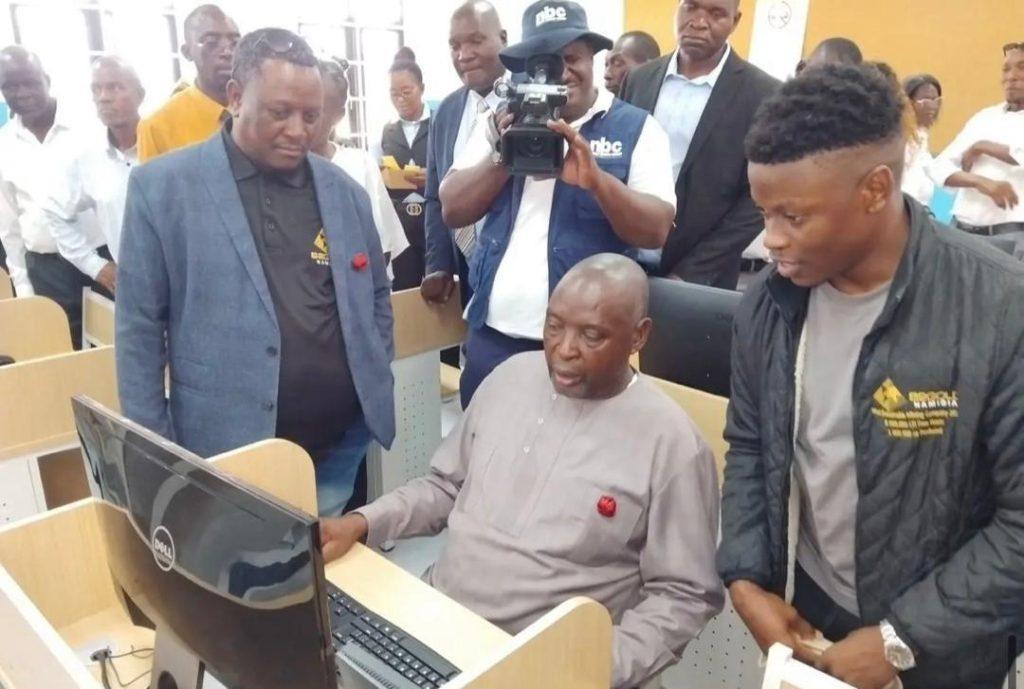 The 40-computer donation was facilitated by minister of urban and rural development James Sankwasa, who on Monday at the official occasion repeatedly cautioned against misuse and urged pupils and teachers alike to preserve the computers for future generations.