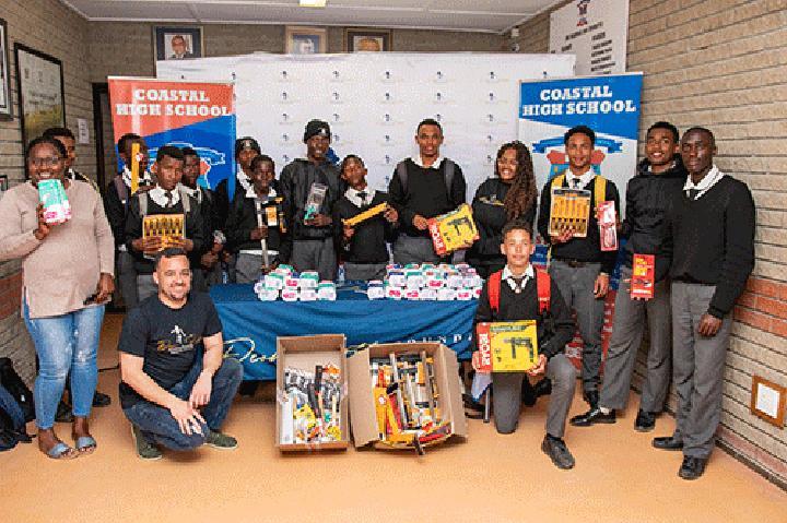 Africa-Press – Namibia. SWAKOPMUND – The Deon Hotto Foundation donated 150 sanitary packs, power tools, and equipment to Coastal High School in Swakopmund on Friday as part of the organisation’s giving back to the community.