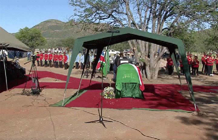 The State burial, attended by Vice President Nangolo Mbumba, Prime Minister Saara Kuugongelwa-Amadhila, Chief Justice Peter Shivute, Swapo secretary general Sophia Shaningwa, and leader of the official opposition, Popular Democratic Movement (PDM) McHenry Venaani was marked by the national anthem and a 17-gun salute by the Namibian Defence Force (NDF).
