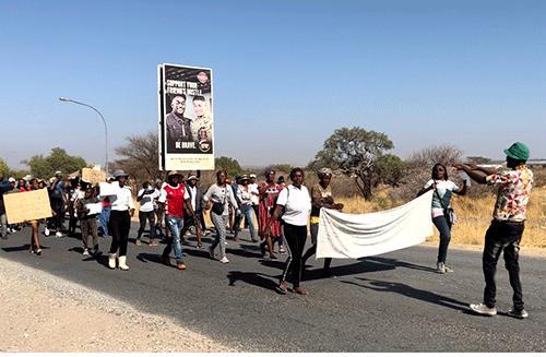Led by community activist Sethy Gariseb the residents chanted: “We want land! Down councillors!”, as they marched from the town’s informal settlements to the municipal building in the central business district, demanding the return of their petition.