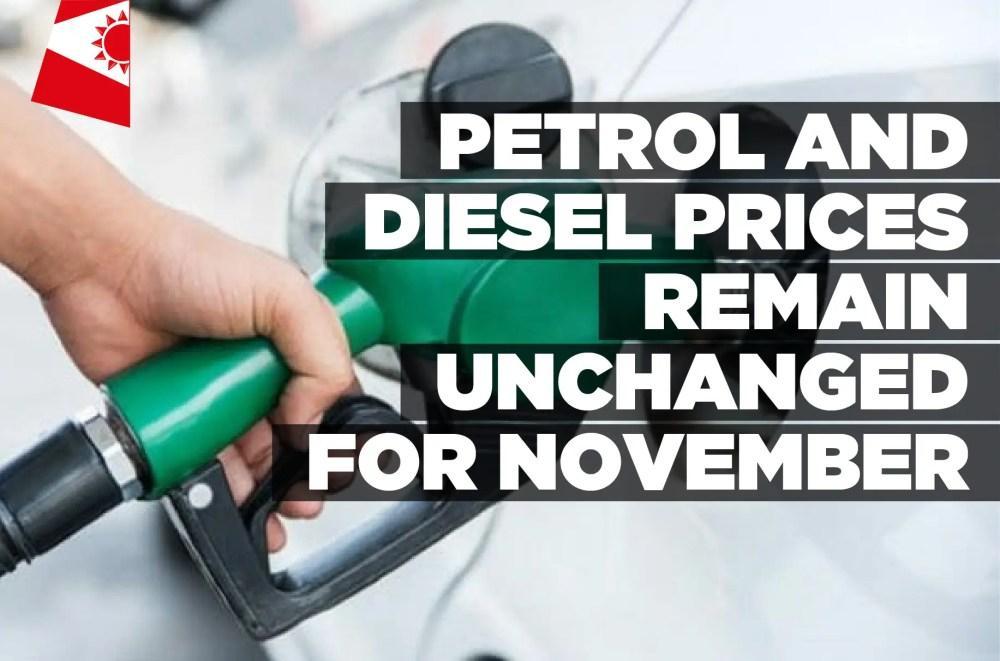 Petrol and diesel prices remain unchanged for November