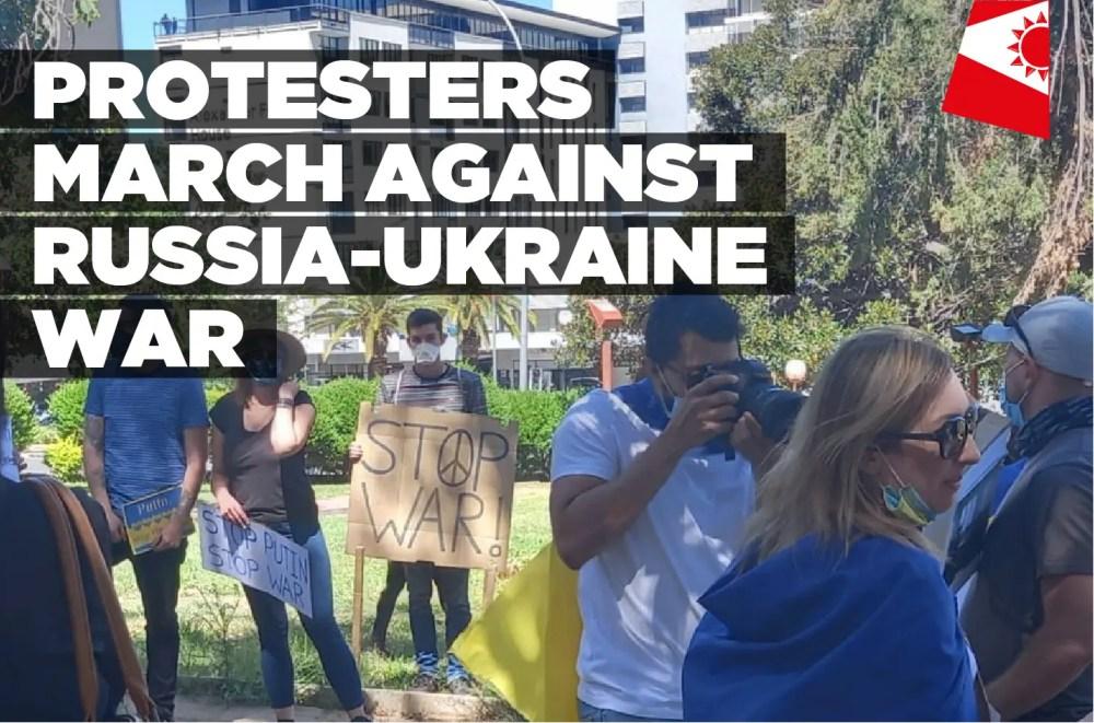 Africa-Press – Namibia. ABOUT 50 people gathered at Zoo Park in Windhoek on Friday to protest against the Russia-Ukraine war. The protesters marched to the Ausspannplatz circle and back to Zoo Park chanting “fight for peace” and “stop Putin, stop the war”. The event was organised by Anastasia Sheremet (25), a Ukrainian who has been living in Namibia since January.