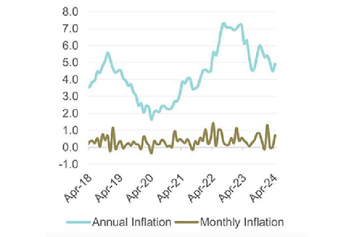 Inflationary pressure continues to mount, driven by an increase in fuel prices, which marked a 12.7% change y/y, and diesel 50ppm, which has increased 5.4% y/y. The most recent fuel increase is yet to translate into an anticipated increase in transport inflation that is sure to be exacerbated by an 8% increase in NamPower’s electricity bulk tariff for 2024/25.