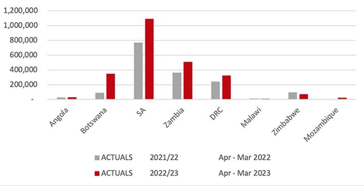 In addition, DRC and Zambian markets have grown exponentially with 33% and 40%, respectively from 243 029 tonnes to 324 151 tonnes and 363 621 tonnes to 510 323 tonnes for both markets.