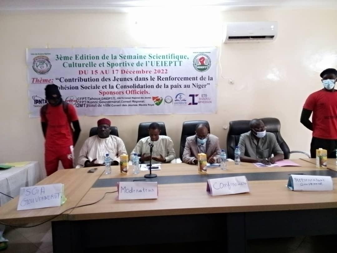Africa-Press – Niger. Le Secrétaire général adjoint du gouvernorat de Tahoua M. Assalé Mahamadou a présidé ce jeudi 15 décembre 2022 dans la salle des réunions du gouvernorat de Tahoua, la cérémonie de lancement des activités de la 3é édition de la semaine scientifique, culturelle et sportive de l’Union des Étudiants, Instituts, Écoles Professionnelles et Techniques (UEIEPT) de la région de Tahoua.