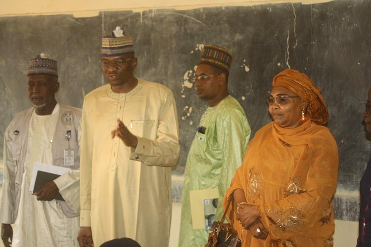 Le Secrétaire Général est accompagné par le Secrétaire Général Adjoint du Gouvernorat, le Préfet du Département de Diffa, la Maire de la ville de Diffa et le Président du Conseil Régional.