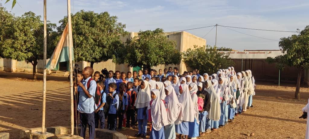 À son arrivée à l’établissement, le DREN et la délégation qui l’accompagne ont été accueillis par l’Inspecteur Franco-Arabe et la Directrice de l’école. Après l’exécution de l’hymne nationale du Niger « L’Honneur de la Patrie », les élèves ont récité une dou’a pour implorer Dieu pour qu’Il descende la paix et la sécurité partout au Niger.