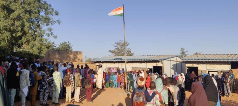 À leur arrivée, le DREN et la délégation qui l’accompagne ont été accueillis par le Directeur de l’école et son personnel. Après l’exécution de l’hymne nationale « L’Honneur de la Patrie » et « La Confédérale » de l’AES, le Directeur de l’école château 3 Mamane Sani Djibji a pris la parole pour se réjouir d’accueillir la visite du premier responsable régional de l’éducation nationale.