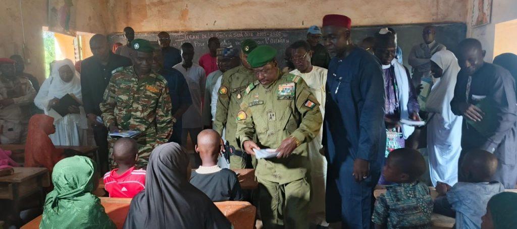 Le slogan retenu pour cette année académique est: « 100 F pour la patrie, un geste pour l’avenir ». Dans cet esprit, plusieurs établissements ont tenu à marquer leur engagement patriotique en remettant au gouverneur de la région de Dosso leurs cotisations du mois d’octobre des élèves et celle des enseignants, en guise de contribution symbolique à cette initiative nationale. À l’issue des visites, le gouverneur de Dosso s’est dit satisfait de l’état de préparation observé dans les différents établissements. « J’ai trouvé des élèves enthousiastes, prêts à affronter l’année académique 2025-2026, et un corps enseignant mobilisé et motivé. Toutes les conditions sont réunies pour garantir une rentrée réussie. Les fournitures attribuées à la région ont été distribuées et chaque élève dispose du matériel nécessaire. ». En conclusion, le gouverneur a tenu à exprimer sa reconnaissance au Président de la République, le Général d’armée Abdourahamane Tiani, ainsi qu’au Premier ministre, ministre de l’Économie et des Finances, M. Ali Mahaman Lamine Zeine, et à l’ensemble du gouvernement pour les efforts déployés en faveur de l’école nigérienne. « En gros, la région de Dosso est prête à affronter cette nouvelle année académique 2025-2026 », a affirmé le gouverneur de la région de Dosso