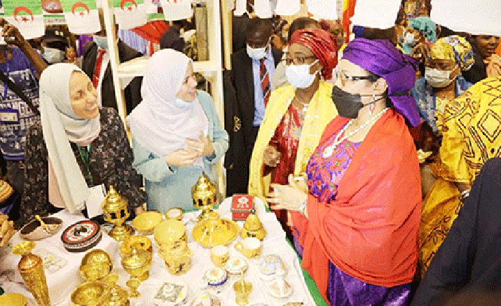A son arrivée, elle a été accueillie par la Directrice Générale de l’Agence SAFEM, Mme Amadou Mairama Ya, puis saluée par les officielles à la tête desquelles la ministre de la Promotion de la Femme Mme Allahoury Aminata Zourkaleini. Elle a par la suite salué les membres du comité d’organisation et ceux des différentes commissions. Après un bref échange avec les organisateurs au Salon d’honneur du Palais du 29 juillet, la Première Dame et la délégation qui l’accompagne ont visité les exposantes installées dans les différents stands. Pendant plus d’une heure d’horloge, la délégation a parcouru les différentes installations où elle a vivement encouragé les femmes exposantes, et apprécié la qualité des différents produits.