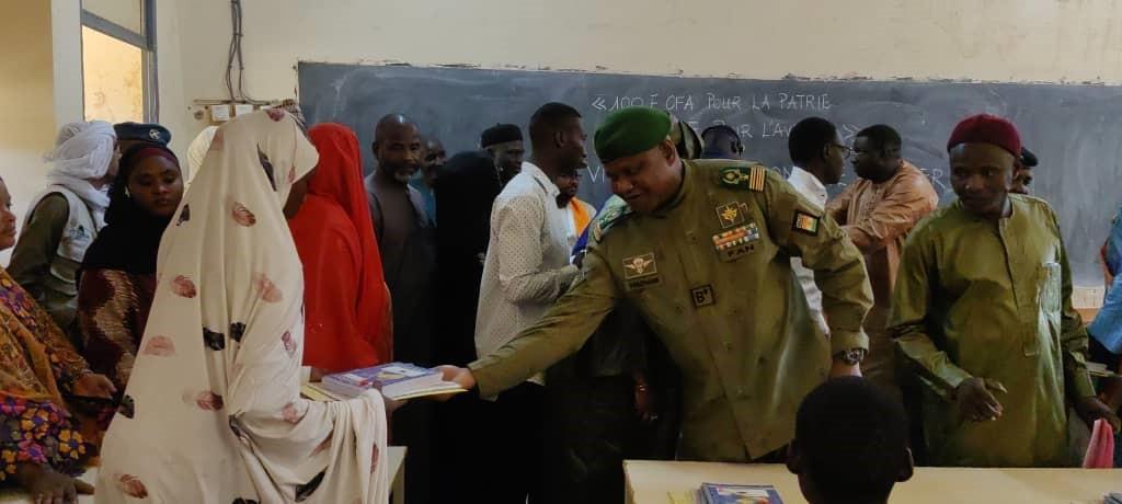 Au Complexe Scolaire privé (CSP) Amama, le Colonel-Major Souleymane Amadou Moussa est allé encourager le promoteur de cette école privée qui a offert 25 bourses, dont 10 pour le primaire et 15 pour le secondaire, aux orphelins des FDS tombées sur le champ d’honneur.