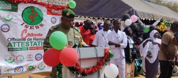 Dans son allocution, le Gouverneur de Tahoua s’est réjoui de prendre la parole à cette cérémonie qui consacre l’aboutissement des efforts des élèves et étudiants de l’ISESS et le début d’une nouvelle étape d’engagement au service de la santé publique. Le Gouverneur Souleymane a rappelé que la qualité de l’éducation est l’une des priorités des plus Hautes Autorités Nigériennes. Selon lui, « l’ISESS, avec ses démembrements à Tahoua et Niamey et bientôt à Madaoua, est devenu de nos jours une référence en formation de santé dans notre pays, particulièrement dans la région de Tahoua, par la qualité de la formation offerte, comme en témoigne sa reconnaissance par l’Agence nationale de l’assurance qualité et supérieure à travers l’octroi de l’accréditation des offres de formation dans cet établissement ».
