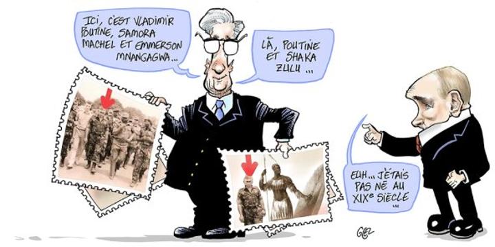 Depuis le début du conflit en Ukraine, une photographie en noir et blanc circule sur les réseaux sociaux. Viraux, des posts expliquent qu’il faut y reconnaître Poutine, en 1973, aux côtés de Samora Machel et Emmerson Mnangagwa, futurs présidents du Mozambique et du Zimbabwe. Le cliché aurait été pris dans un camp d’entraînement militaire tanzanien dédié aux mouvements d’indépendance d’Afrique australe. En 2018, un blog affirmait que le Russe aurait formé des combattants de la liberté pendant quatre ans. Les twittos africains de 2022 ne manquent pas d’en conclure que « chaque Africain sur terre doit soutenir le président Poutine et la Russie dans cette lutte » contre « le colonialisme et l’impérialisme ».