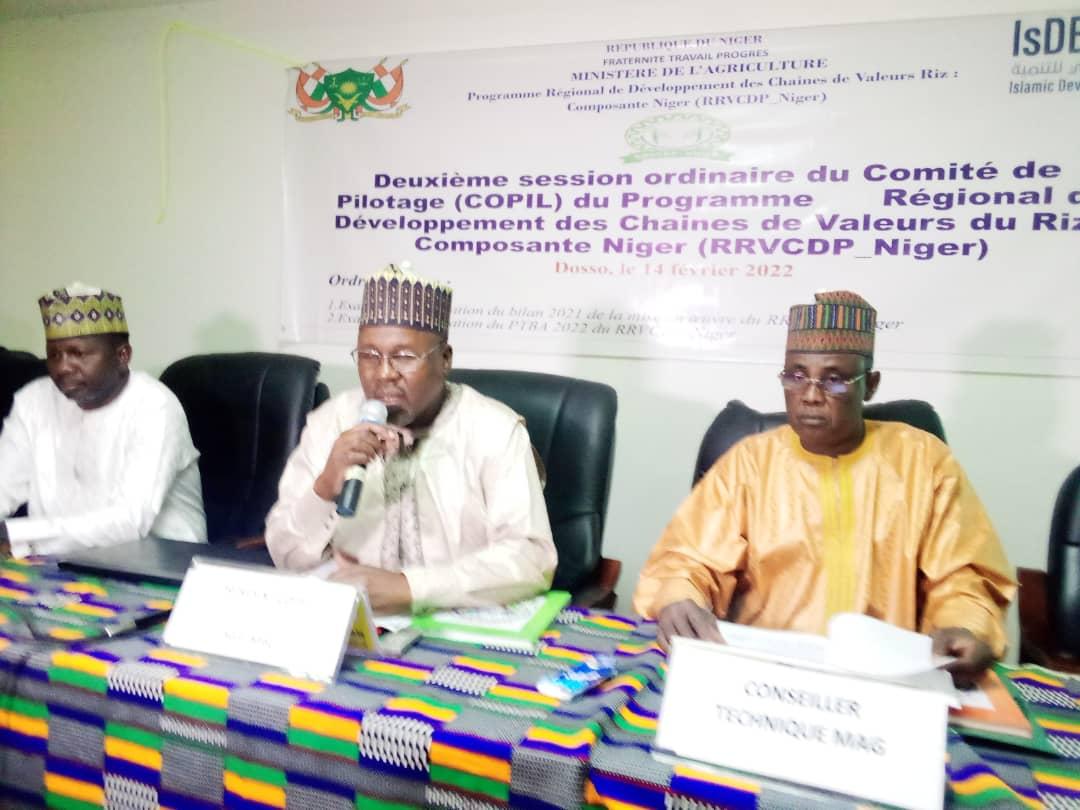 Africa-Press – Niger. Le Secrétaire général adjoint du ministère de l’agriculture, Président par intérim du Comité national du COPIL M. Zabeirou Issaka a présidé ce lundi 14 février 2022 à Dosso, la deuxième session ordinaire du Comité de Pilotage (COPIL) du Programme Régional de Développement des Chaînes de Valeurs du Riz Composante-Niger (RRVCDP).