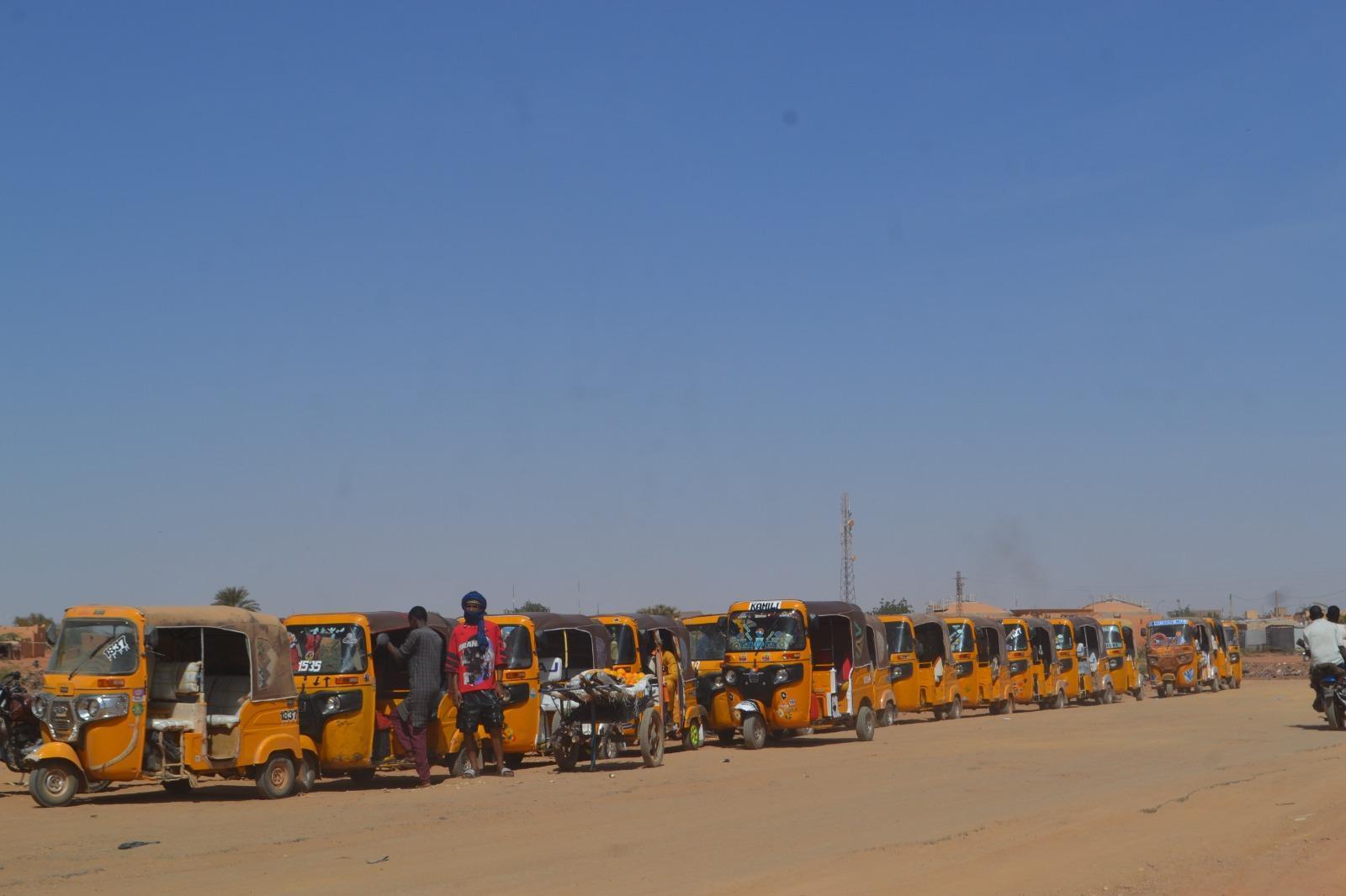 Dès leur entrée dans la ville d’Arlit, les citernes sont suivies immédiatement par un cortège de tricycles appelés communément « A DAYDAYTA » qui forment une impressionnante ligne d’attente autour de la station. Le réservoir de ce type de moyen de transport est de 8 litres. « Le plein me fait un peu moins de 48 heures, mais, s’il y a beaucoup de course, ça fait juste 24 heures (…) tu sais parmi nous, beauc,oup ne sont pas en règle. Peut-être ils sont plus nombreux que nous, donc la plupart des accusations sur certains comportements des conducteurs de tricycles, concernent ceux qui ne sont pas en règle. Notre syndicat ne fait rien pour les amener à se conformer (…) bon, ce n’est vraiment pas mon problème. Ma préoccupation, c’est de me réveiller et chercher des clients pour des courses afin de gagner ma vie et, depuis plus de 2 ans je n’ai jamais manqué aux règles. J’ai mes papiers au complet », confie un conducteur de tricycle.