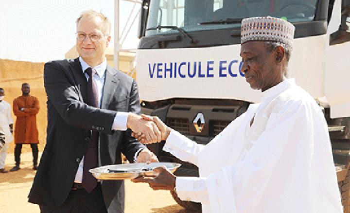 Africa-Press – Niger. Le ministre des Transports, M. Oumarou Malam Alma a reçu, des mains du chef de coopération de l’Union Européenne, M. Christian RASMUSSAN, les clefs des bâtiments et matériel roulant acquis sur financement de l’Union Européenne au profit du Centre de Formation aux Techniques des Transports Routiers (CFTTR). D’un montant global de deux cent quatre-vingt-dix-huit millions six cent quatre-vingt-quatre mille cent (298.684.100) FCFA, cet appui concerne d’une part, la réhabilitation d’un bâtiment principal, l’aménagement des salles de cours, l’acquisition de bureaux et matériel informatique, et d’autre part, la dotation en matériel roulant composé d’un ensemble articulé équipé d’une grue puis d’un autobus de 70 places et d’un véhicule 4X4 station wagon. La cérémonie s’est déroulée hier dans l’enceinte dudit centre.