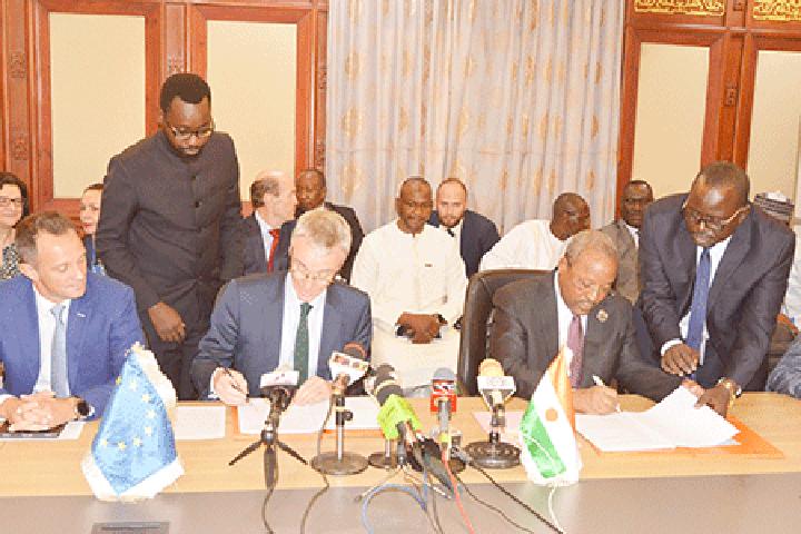 Peu après la signature de cette convention les deux personnalités, le ministre d’Etat, ministre des Affaires Etrangères et de la Coopération, M. Massoudou Hassoumi et le Directeur Général du Partenariat International de la Commission Européenne se sont conjointement réjouis de l’aboutissement de ce processus. Ils ont tous reconnu les bonnes qualités des relations de coopération entre l’Union Européenne et la République du Niger. Les échanges des copies de cette convention et une photo de famille ont sanctionné cette cérémonie.