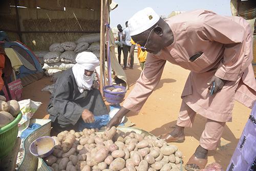 Amoumoune Aboutali, un producteur et revendeur de pomme de terre originaire de la commune rurale de Timia, qui participe à cette 15è édition de la foire des maraîchers pour la troisième fois avec près de cinquante sacs de 50 kg de pomme de terre. « Il y’a d’autres sacs qui sont en cours d’acheminement. C’est la récolte de mon propre champ. J’amène aussi avec moi les pommes de terre de mes amis qui ne peuvent pas se déplacer », a-t-il dit.