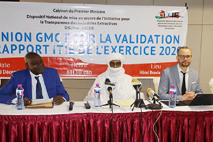 Africa-Press – Niger. Le Groupe Multipartite de Concertation du Dispositif National de mise en œuvre de l’Initiative pour la Transparence des Industries Extractives (GMC/DN/ITIE-Niger) a organisé hier à Niamey, un atelier de validation du projet de rapport pays ITIE de l’exercice fiscal 2020. C’est le directeur de cabinet adjoint du Premier ministre et président du Groupe Multipartite de Concertation (GMC), M. Aghali Abdel-Kader qui a présidé la cérémonie d’ouverture de cette rencontre.