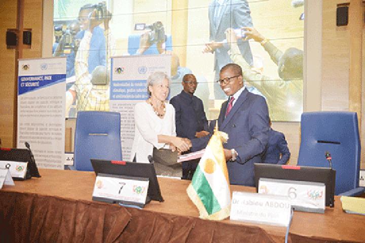 Africa-Press – Niger. Dans l’optique d’une mobilisation conséquente des partenaires du Niger à la table ronde de Paris pour le financement du Plan de Développement Economique et Social (PDES) 2022-2026, le ministère du Plan a organisé, hier matin, une rencontre d’échanges avec l’ensemble des parties prenantes. Il s’agit à travers cette rencontre de présenter les enjeux et opportunités PDES 2022-2026 et le Plan Cadre de Coopération (PCC) 2023-2027. Cette rencontre d’échange a été aussi l’occasion pour le ministre du Plan, Dr Abdou Rabiou et la coordinatrice du Système des Nations Unies, Mme Louise Irène Aubin pour procéder à la signature des documents de partenariat du Plan Cadre de Coopération des Nations Unies pour le Développement Durable (PCC 2023-2027).