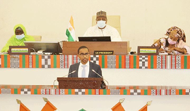 Africa-PressNiger. Le ministre des Finances, M. Ahmat Jidoud a procédé, hier devant l’Assemblée nationale en l’absence des députés de l’opposition politique boycottant la procédure, à la présentation solennelle du projet de loi des finances au titre de l’année budgétaire 2022. Les ressources budgétaires sont projetées à 2.888,79 milliards en 2022 contre 2.830,99 milliards dans le premier collectif budgétaire 2021, soit une hausse de 2,04%. Les travaux de la séance plénière de la 2ème session ordinaire au titre de l’année 2022 dite session budgétaire de l’Assemblée Nationale qui se poursuivent à l’Hémicycle, Place de la Concertation à Niamey, ont été présidés par le président de l’institution, SE Seini Oumarou en présence des commissaires du Gouvernement.