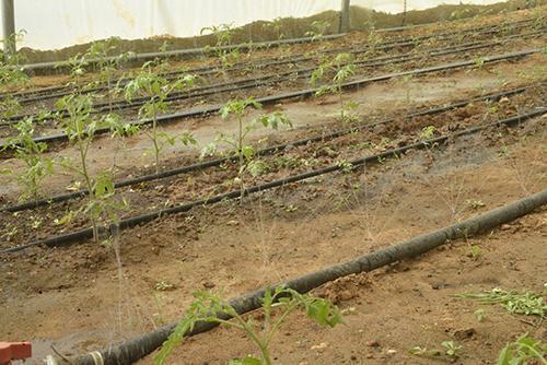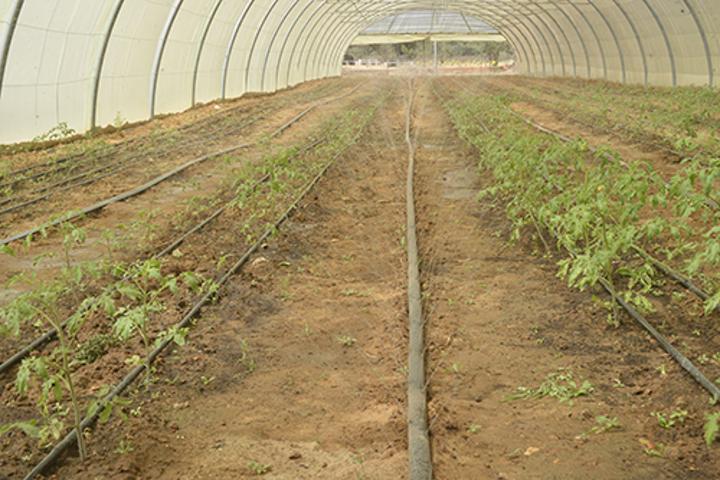 Installée sur une superficie de 504 mètres carrés, la serre accueille pour cette phase pilote une culture de tomates, première variété choisie pour l’expérimentation. De forme tunnel, elle est aménagée en six rangées parfaitement tracées. Le système d’irrigation utilise à la fois la technologie « Hadari » et le goutte-à-goutte, connecté à une bonbonne qui permet l’épandage d’engrais ou de bio-pesticides. Bien que les plants soient encore jeunes, chacun d’eux porte une promesse de vie, reflétant la fertilité d’une terre pleine d’espoir. Ce n’est pas encore un jardin luxuriant, mais les tomates annoncent déjà une abondance future.
