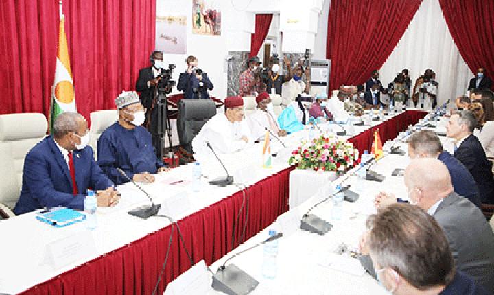 Dans son mot introductif, le Président Bazoum s’est dit fier de cette première visite d’un Président Suisse au Niger. Il s’est ensuite réjoui des bonnes relations de coopération entre les deux pays. Mohamed Bazoum s’est aussi dit satisfait de constater que le Président Ignazio Cassis, visitera les régions de Maradi et d’Agadez. Il a aussi évoqué la question sécuritaire dans le Sahel et d’autres sujets d’intérêts nationaux, régionaux et internationaux. Le Président Nigérien a aussi brièvement présenté, à ses hôtes, la situation sécuritaire du Niger ainsi que les efforts que fournissent les autorités pour le bien-être des populations, sans oublier les élections libres et démocratiques qu’a connues le Niger en 2021.