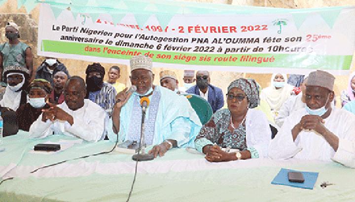 Africa-Press – Niger. Le Parti Nigérien pour l’Autogestion (PNA Al Oumma) a commémoré, le dimanche 6 février dernier, le 25ème anniversaire de sa création. A cette occasion, une manifestation a été organisée au siège du parti à Niamey. La cérémonie a enregistré la présence des représentants de plusieurs partis politiques du Niger. C’était une occasion pour les militantes et militants du parti d’affirmer la sagesse politique du parti mais aussi de réaffirmer leurs convictions et ambitions pour le Niger. Le parti a adressé un message de paix aux gouvernants et aux gouvernés pour que s’installe et se consolide la bonne gouvernance, à travers notamment, la lutte contre la corruption et la concussion, le respect des biens publics, la bonne gestion et une justice équitable au Niger.