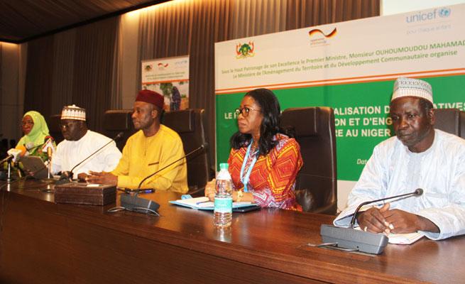 Une conférence de presse a été organisée. Face aux journalistes des médias publics et privés, les organisateurs du Forum sont revenus en profondeur sur les recommandations du forum et les résultats escomptés. La rencontre avec les journalistes a été co-animée par plusieurs acteurs : le secrétaire général du Ministère de l’aménagement du Territoire et du Développement M. Abdou Bacharou Souleymane, Raissa Edwige, chef section changement social et comportemental UNICEF, M. Hamidou Iro, Directeur régional de l’aménagement du territoire Agadez, Amadou Rafitouka Directeur régional du développement local au ministère de l’aménagement du territoire et du Développement, M. Siraji Chaibou Maire de la commune rurale de Kantché et Mme Garba Adamou Hadiza, représentante de l’association des municipalités au Niger.