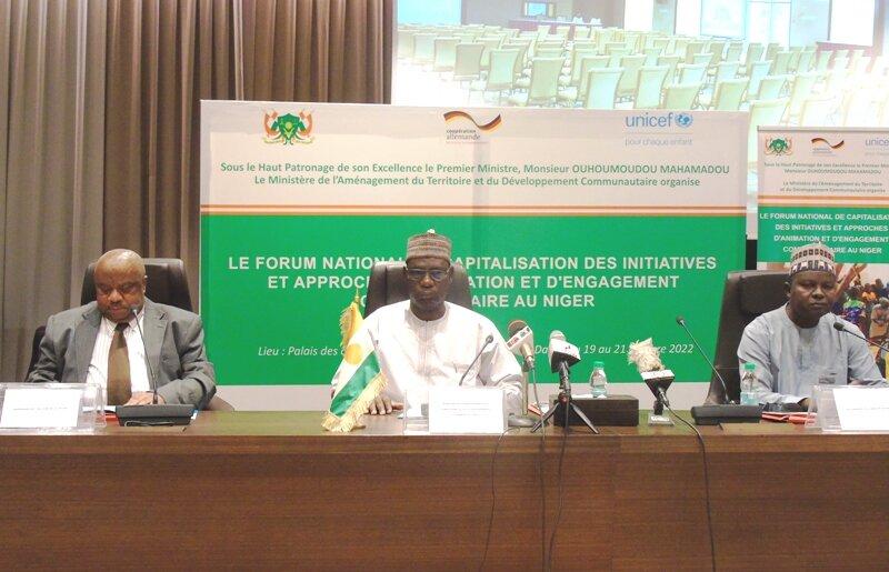Africa-Press – Niger. La salle présidentielle du Palais de Congrès de Niamey a abrité ce mercredi 19 octobre 2022, la cérémonie d’ouverture du Forum national de capitalisation des initiatives et approches d’animation et d’engagement communautaire dans les actions d’urgence et de développement au Niger. Organisée par le Ministère de l’Aménagement du Territoire et du Développement Communautaire avec l’appui du Fonds des Nations Unies Pour l’Enfance (UNICEF) grâce à un financement de la coopération allemande, les assises de ce forum qui dureront 3 jours se présentent comme une opportunité pour les différentes parties prenantes de repenser l’engagement communautaire et citoyen afin d’apporter des réponses aux questions de gouvernance participative, d’appropriation et de durabilité des actions de développement et humanitaire qui se posent à notre société dans un contexte marqué par des chocs multiformes.