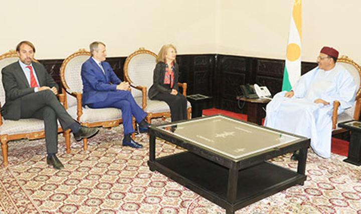 Africa-Press – Niger. En vite de travail au Niger, le Directeur Général de l’Agence Italienne pour la Coopération au Développement (AICS) M. Luca Maestripieri à la tête d’une délégation a été reçu en audience hier matin, par le Président de la République, Chef de l’Etat SE Mohamed Bazoum. A travers cette rencontre, il s’agit pour la délégation de confirmer l’action de la coopération italienne dans un contexte de bonnes relations avec le Niger.
