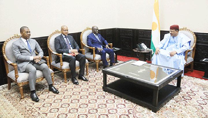 Africa-Press – Niger. Le Président de la République, Chef de l’Etat, SE Mohamed Bazoum a accordé hier dans la soirée, une série d’audiences. Le Chef de l’Etat s’est d’abord entretenu avec le Secrétaire exécutif du Conseil de l’Entente, M. Marcel Tamon Tanah. A sa sortie d’audience, le Secrétaire exécutif a indiqué qu’ils ont fait avec le Chef de l’Etat, le tour d’horizon de la situation du Conseil de l’Entente. «Nous avons convenu qu’il fallait redynamiser cette institution, faire en sorte que ses missions soient mieux perçues et plus pertinentes vis-à-vis des autres organisations de l’espace Ouest-Africain notamment la CEDEAO et l’UEMOA», a confié M. Marcel Tamon Tanah qui dit avoir fait part au Président de la République du souhait du Conseil de l’Entente d’accompagner le Niger par rapport aux problèmes humanitaires engendrés par les attaques terroristes, la situation humanitaire inquiétante et l’insécurité alimentaire qui touche plus de trois millions des Nigériens. Et le Chef de l’Etat a accepté d’accompagner cette initiative du Conseil de l’Entente visant à approcher les institutions internationales telles que le CICR, l’OIM, le PAM pour que leurs appuis auprès du Niger soient renforcés. «Nous avons également insisté auprès du Président Mohamed Bazoum sur la nécessité d’une concertation permanente, politique entre les Chefs d’Etat de l’espace CEDEAO et UEMOA, ce qui renforcera l’institution», a-t-il fait savoir. M. Marcel Tamon Tanah a aussi souligné que leurs échanges ont porté sur le projet d’un Mall qui sera construit au Niger par le Conseil de l’Entente et le Président Mohamed Bazoum a promis d’appuyer le Conseil dans cette démarche.