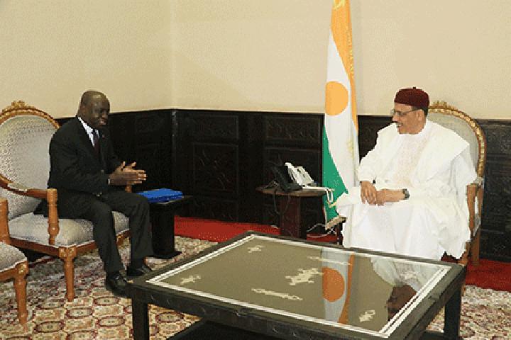 Africa-Press – Niger. Le Président de la République, Chef de l’État, SE. Mohamed Bazoum a reçu, hier en audience, le Secrétaire exécutif du Conseil de l’Entente, M Marcel Amon Tanoh. L’hôte du Chef de l’Etat séjourne au Niger dans le cadre de la célébration de la fête de la République, édition 2022. A sa sortie d’audience, le Secrétaire exécutif du Conseil de l’Entente a indiqué avoir rendu une visite de courtoisie au Président Mohamed Bazoum pour lui présenter ses civilités. Il a saisi l’occasion pour, dit-il, prendre les conseils avisés du chef de l’Etat. M Tanoh a ajouté avoir échangé avec le Président de la République, sur le prochain sommet des Chefs d’État de leur Organisation.