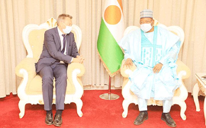 Africa-Press – Niger. Le Premier ministre, Chef du gouvernement, SE. Ouhoumoudou Mahamadou, a reçu en audience, dans l’après-midi d’hier 9 décembre 2021, le président du Comité international de la Croix-Rouge, M. Peter Maurer. Il a indiqué à sa sortie d’audience que le CICR a une des plus grandes et importantes opérations au monde, dans le Sahel, en particulier au Niger, où les populations sont particulièrement vulnérables, notamment dans les régions de Tillabéri et Diffa.